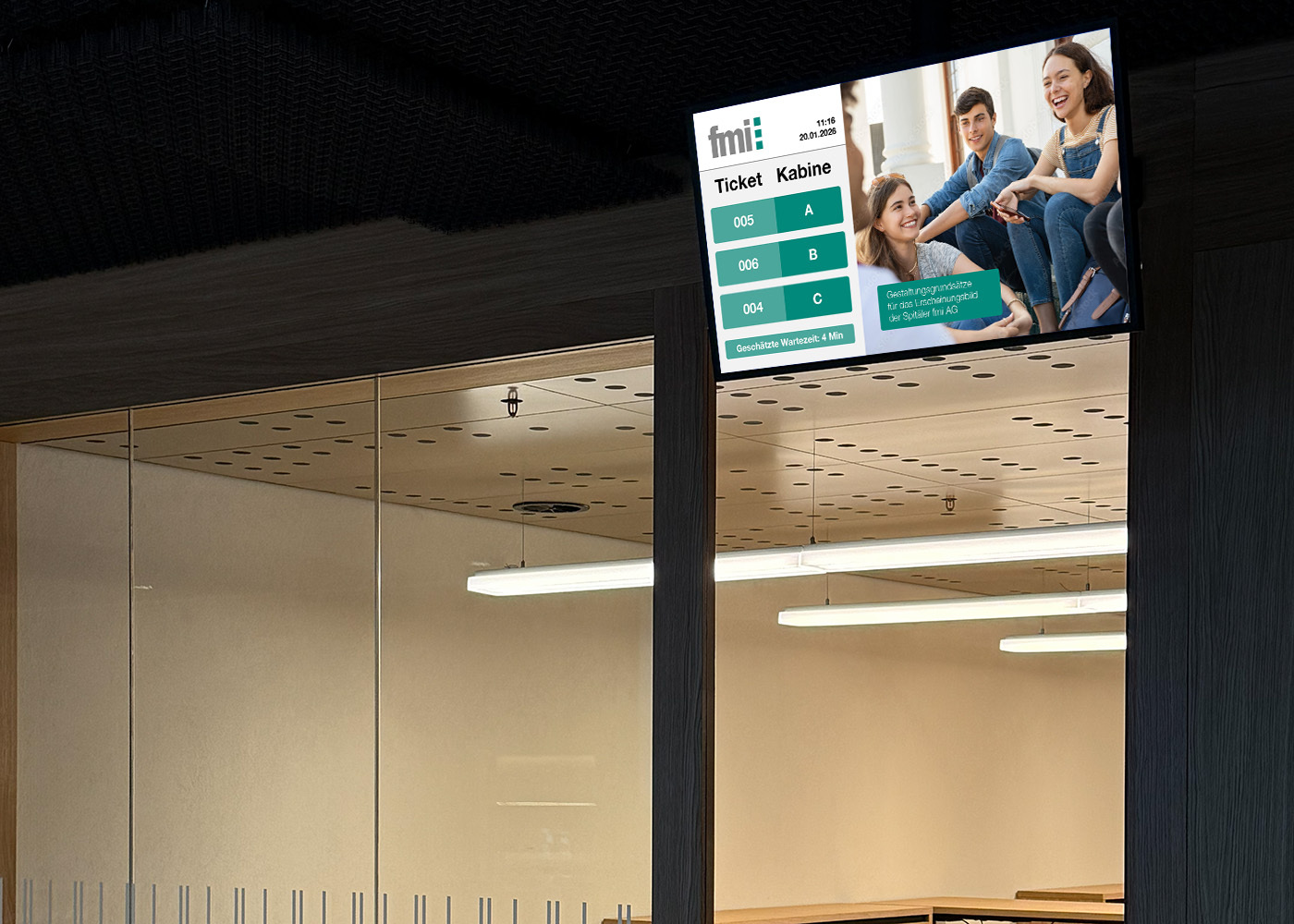 Informieren die Besucher über die aktuelle Wartezeit und über den direkten Weg zum Schalter.