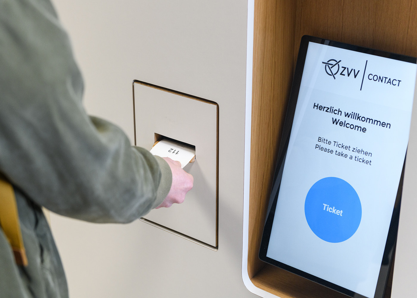 Das stark frequentierte ZVV-Contact am Zürich Hauptbahnhof bearbeitet täglich zahlreiche Anfragen an vier Servicepoints. Um Wartezeiten zu reduzieren, den Kundenfluss effizient zu steuern und die Orientierung zu erleichtern, wurde eine digitale Queue-Lösung eingeführt. Besucher ziehen ihre Tickets, die Warteschlange wird zentral verwaltet und auf einem Übersichtsdisplay werden aktuelle Aufrufe und Servicepoint-Zuweisungen angezeigt. Das Queue-Management-System optimiert Abläufe, verkürzt Wartezeiten und steigert die Servicequalität nachhaltig.