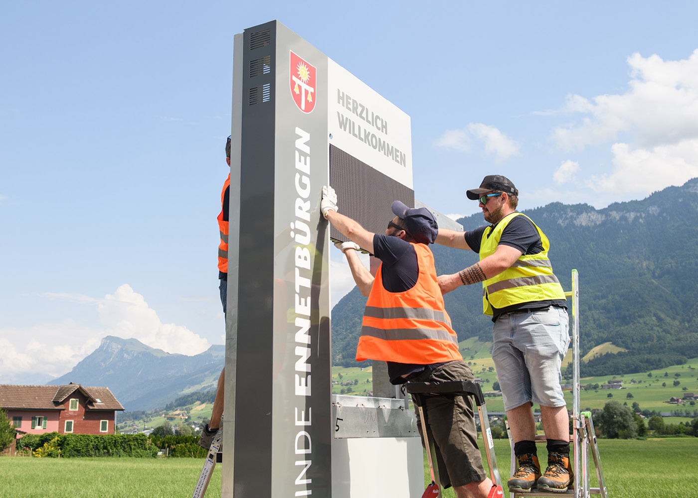 Die Gemeinden Buochs und Ennetbürgen im Kanton Nidwalden setzen mit der Einführung digitaler Ortseingangstafeln auf eine zukunftsorientierte Form der Kommunikation. Ziel ist es, aktuelle Informationen, Veranstaltungshinweise und Mitteilungen schnell, sichtbar und professionell an die Bevölkerung und Gäste zu vermitteln – ganz ohne Aufwand vor Ort.