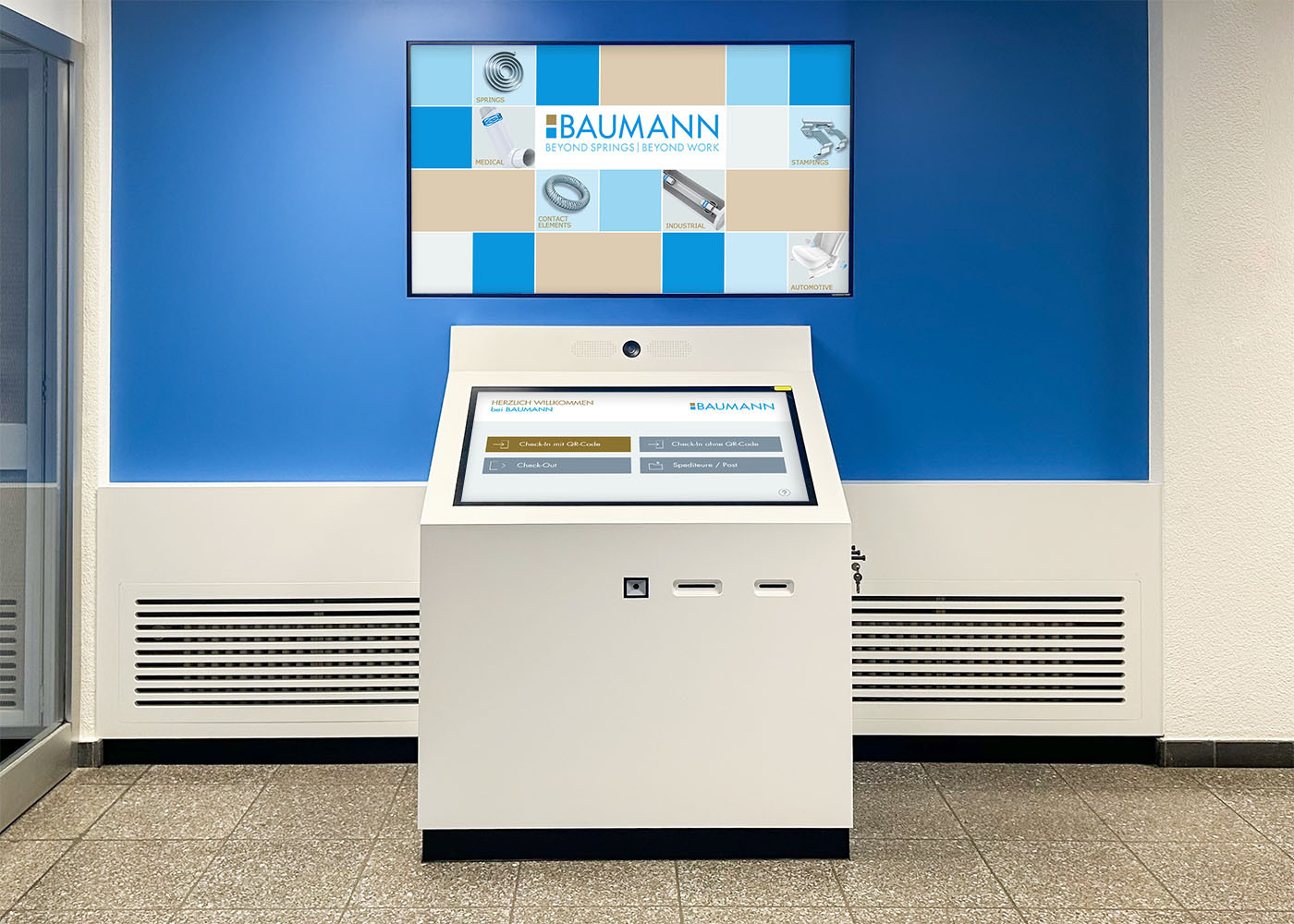 Interaktive Check-in-Station für Besucher, Lieferanten und Mitarbeitende.