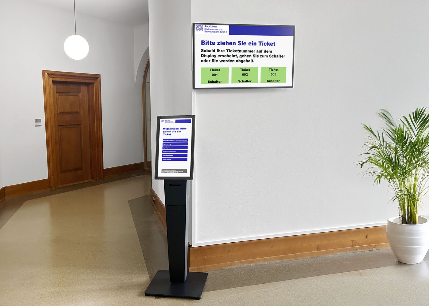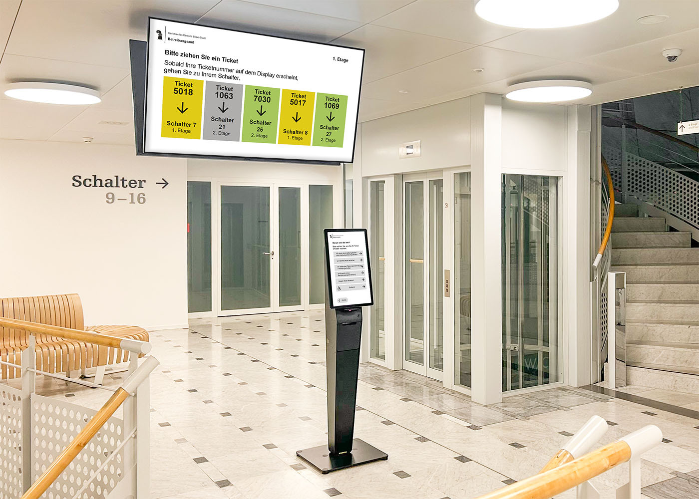 Täglich werden hier zahlreiche Kundinnen und Kunden an 16 Schaltern auf zwei Etagen bedient. Um Wartezeiten zu verkürzen und den Service zu verbessern, wurde ein modernes Warteschlangensystem eingeführt. Zwei Ticketstelen mit insgesamt 9 Queues ermöglichen eine flexible Besucherführung. Kundinnen und …